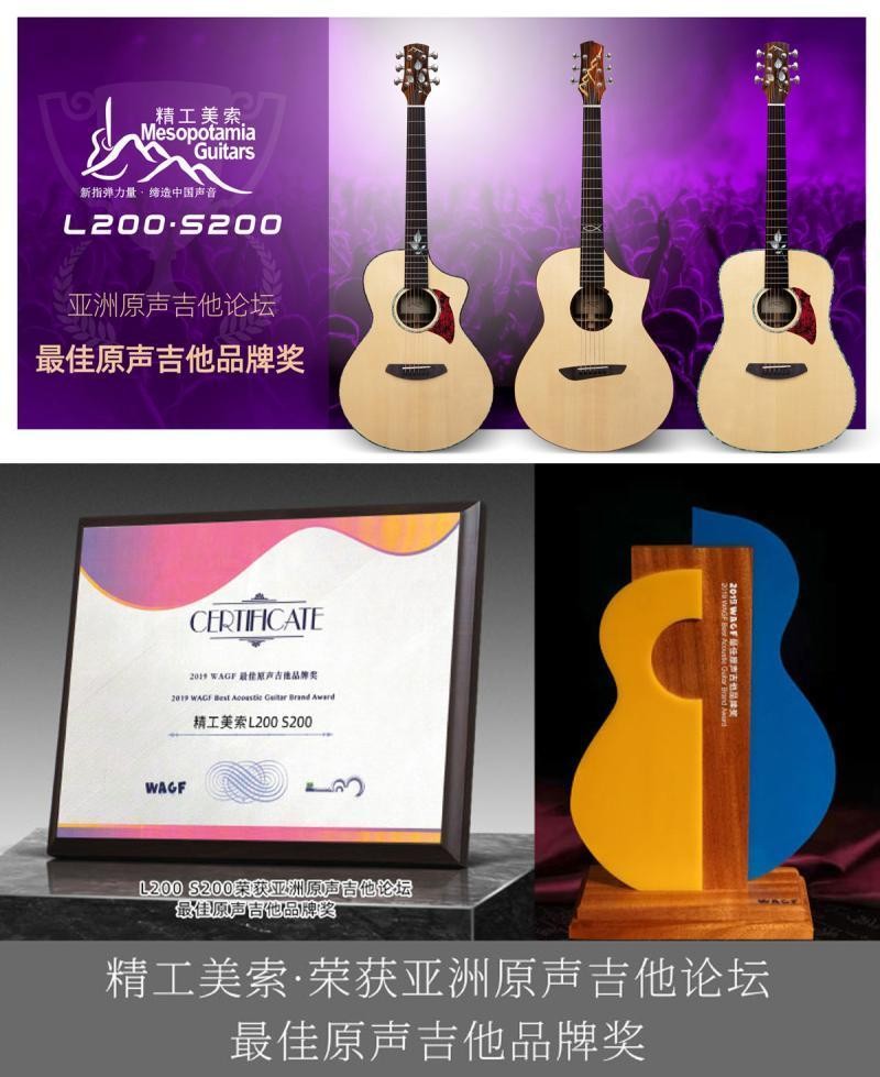 美索吉他的经典型号L200和S200,凭借其卓越的音质与精致的外观,赢得了广泛好评及业界的普遍认可。