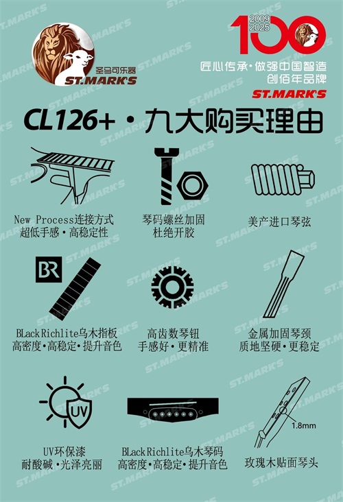 依靠这两大 “秘密武器”,圣马可吉他在中国单板吉他市场强势崛起,成功跻身行业领军品牌的行列。不管是音质、稳定性,还是外观设计,圣马可吉他都展现出了超凡的品质与独特的魅力。如果你也渴望拥有一把能陪伴自己在音乐道路上不断奋进,始终保持稳定表现,音色又十分动人的吉他,那么圣马可吉他无疑是你的最佳选择,它就是众多音乐爱好者心中梦寐以求的理想之琴。别再迟疑了,赶快把圣马可吉他带回家,开启属于你的美妙音乐之旅吧!