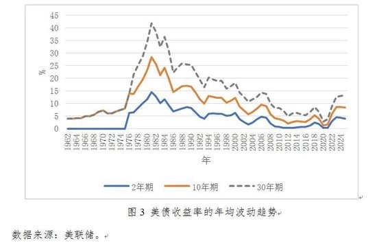 2008年金融危机后至2020年,美债收益率持续走低。金融危机爆发后,美国经济陷入衰退,美联储采取了零利率政策和量化宽松政策,大规模购买国债以稳定金融市场和刺激经济增长,导致美债收益率大幅下降。2020年8月,10年期美债收益率一度降至0.52%的历史最低值。2020年至今,美债收益率呈现波动上升的趋势。随着美国经济从疫情中逐渐复苏,通胀预期上升,以及美联储逐步退出量化宽松政策并开始加息,美债收益率开始回升(详见图3)。