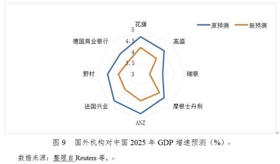 第二,核心矛盾与风险点。一是需求不足拖累物价。2025年一季度我国CPI同比下滑0.1%,PPI同比降幅收窄但仍负增长,GDP缩减指数连续八个季度为负(-0.77%)。消费疲弱仍为物价回升的核心掣肘。二是未来出口存在隐忧。一季度我国出口增长6.9%,但在国际经贸斗争下对美出口或大幅下降,其中机械电子等产业承压显著。受此影响,国际机构普遍下调中国2025年GDP预期0.5个百分点。