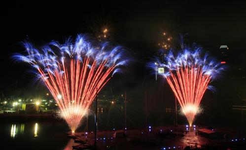 12、绽放的烟花就像春天的花儿在花园里开放一样,我看到这些五彩缤纷、五颜六色的烟花真是让我如痴如醉啊!