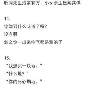 18. “你知道我喜欢吃什么吗?”“什么?”“我喜欢痴痴地望着你”