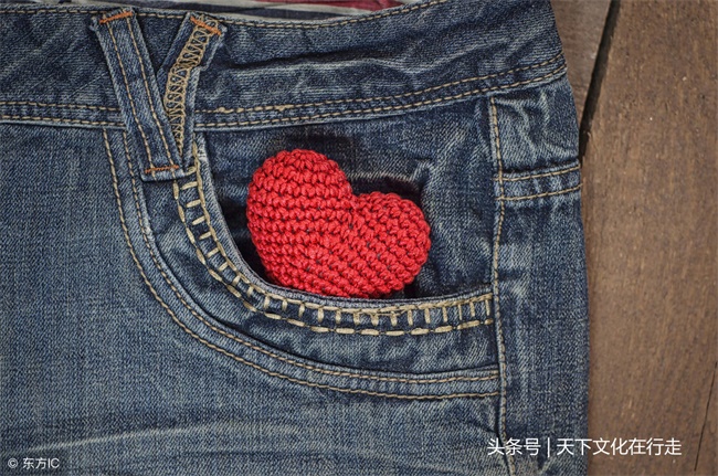 蓝色牛仔裤前口袋里的小心脏