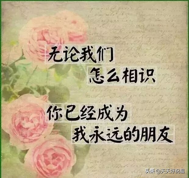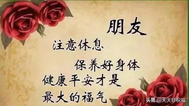 4、岁月匆匆,愿我的祝福常驻你心中;一句平安,代表了我所有的心愿;好朋友,简简单单就好;好情谊,清清爽爽最真;好缘份,当会久久长长。祝:天天快乐!