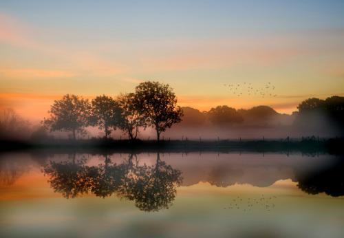 42、秋天,秋风阵阵,荷花枯萎了,很多树的叶子都落了下来,雪松仍然一片绿装。