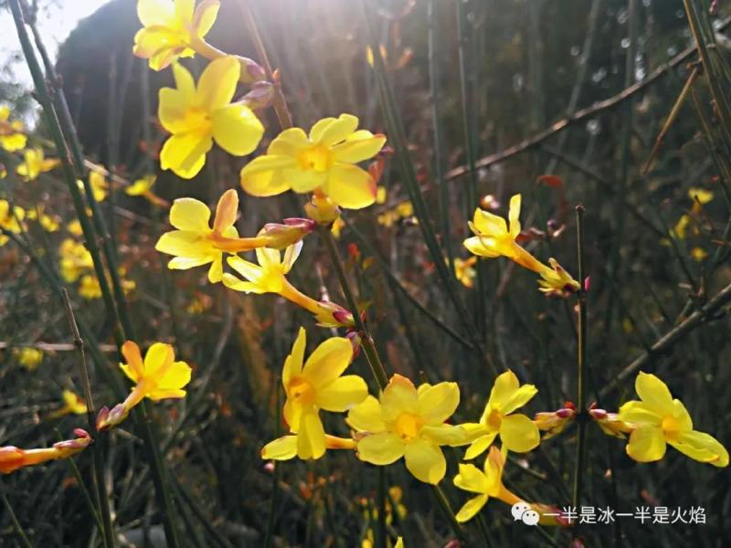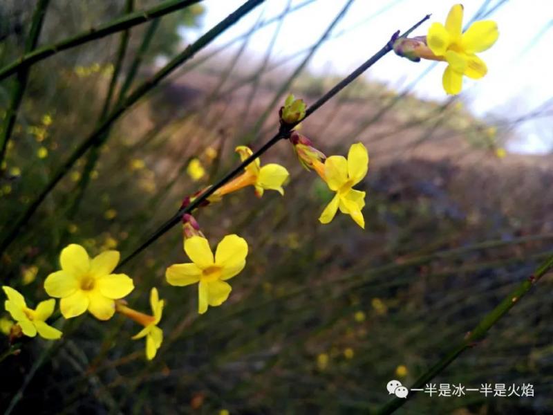一过立春,貌似早晚还有些寒凉,迎春花便开始花蕾初绽,然后,一朵,两朵,三四朵,渐渐地,一串一串地开了。