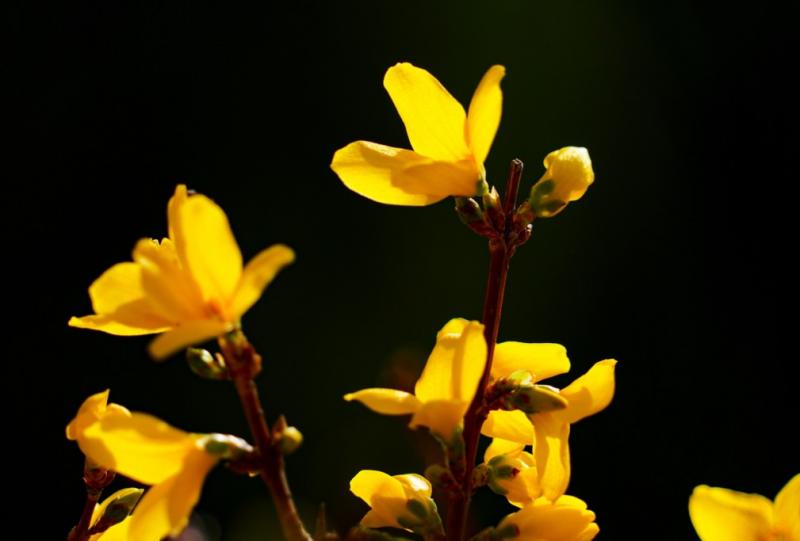 似乎不用专门去寻找,只要嗅到一丝春的气息,这种明亮的小黄花,就迫不及待的闪亮登场了。它枝条挺拔,花团锦簇,花色端庄秀丽,不招摇,开在属于自己的天地间。远远望去,朵朵鹅黄色的小花团团拥簇在一起,遥向世人问春安。或是在公园,或是在路边,或是在小区里,我们总能在第一时间发现她们的身影,那种非常纯正的明黄色,娇俏又真诚,总能给人一种悠悠然的欣喜。就像明代高濂在《草花谱》里写的那样,“春首开花,故名。”所以迎春花一开,意味着冬去春来,新的一年又开始了。