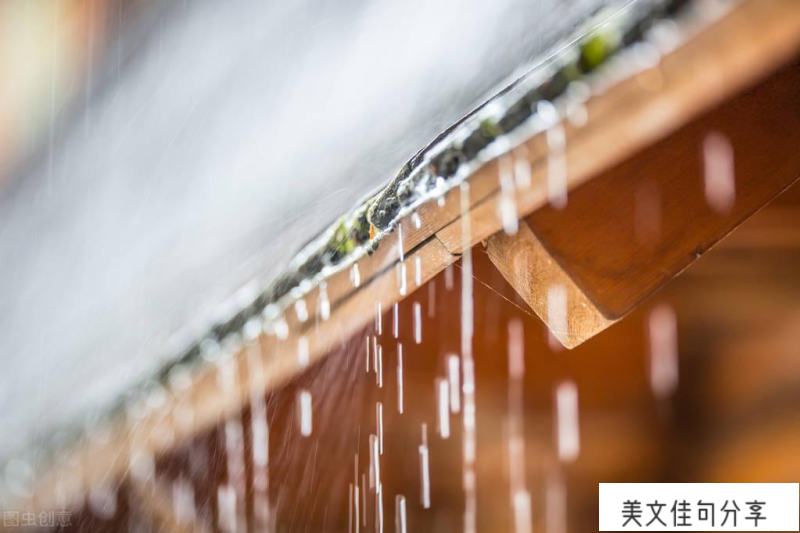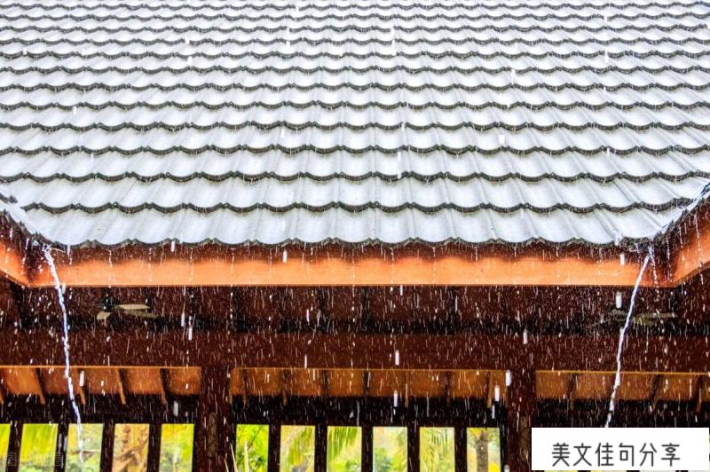 5.听着!屋顶上的雨水像打击乐一样“滴答”作响。池塘里下雨时,唱着《丁丁丁》,细小的水花溅在水面上,像一个卖花姑娘在翩翩起舞。