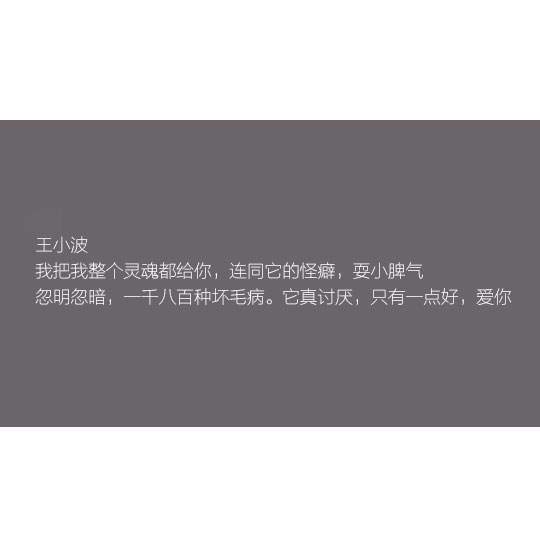 我把我整个灵魂都给你,连同它的怪癖,耍小脾气,忽明忽暗,一千八百种坏毛病。它真讨厌,只有一点好,爱你。