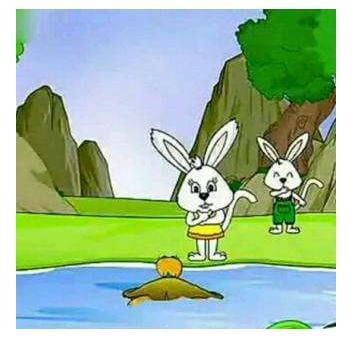 兔子立即踏着鳖背向前跳去,一边跳一边数,很快就到了对岸,他非常得意,对鳖说:“你们家族大是大了,可全是王八笨蛋,傻头傻脑来替我搭浮桥,哈哈!”说罢便往岸上跳去,谁知那条长尾巴还拖在后面,被岸边那只鳖一口咬断了。