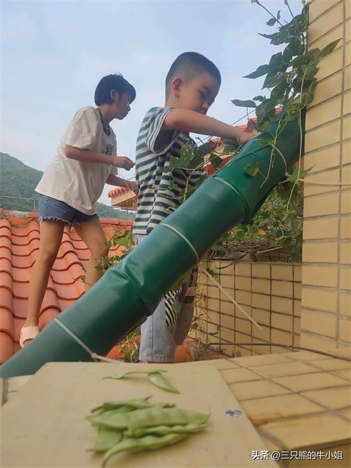 下午我和姐姐一起爬到楼顶上,摘了奶奶种的茶豆。爷爷晚上把它们煮了,但是我和姐姐都没吃,我们都不喜欢吃茶豆。