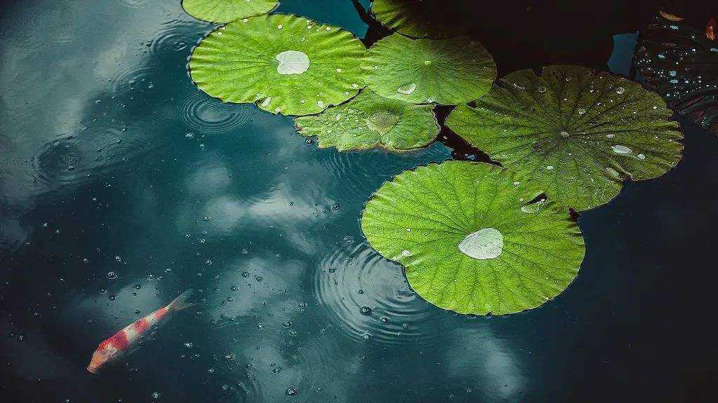 雨落水塘 鱼戏莲叶