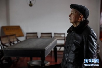 1月27日,83岁的遵义会议纪念馆原副馆长田兴咏在遵义会议召开的长方桌前口述历史。新华社记者 欧东衢 摄