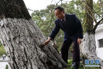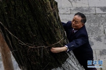 1月27日,67岁的“树医生”张本光在查看遵义会议会址前槐树的生长状况。新华社记者 欧东衢 摄