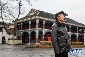 1月27日,83岁的遵义会议纪念馆原副馆长田兴咏在遵义会议会址前口述历史。新华社记者 欧东衢 摄