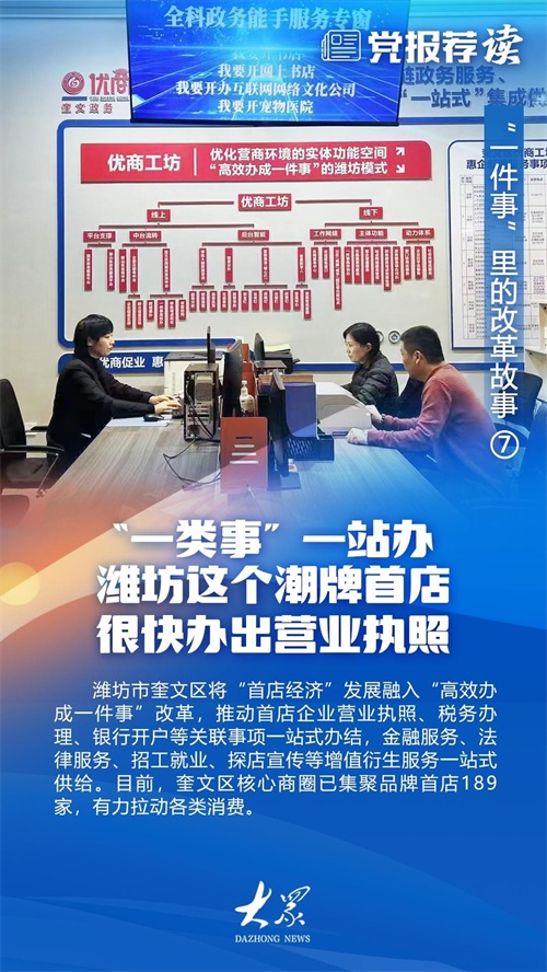 “高效办成一件事”是优化政务服务、提升行政效能的重要抓手。为进一步反映全面深化改革实践成效,大众新闻·大众日报推出“‘一件事’里的改革故事”系列报道,聚焦改革探索,坚持民生视角,从办事群众和企业的微观感受出发,关注各地各部门企业注销登记、信用修复、教育入学、残疾人服务、就医费用报销等领域的“一件事”改革,展现改革给企业、群众带来的获得感。