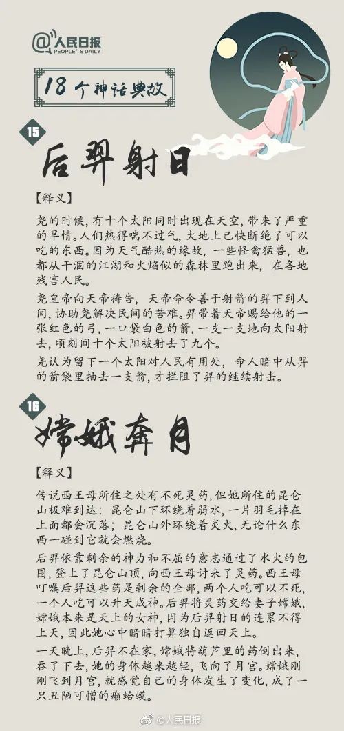 中华文化博大精深,神话故事更是其中的璀璨瑰宝,不仅体现了古代劳动人民天马行空的浪漫想象,更展示出他们勤劳勇敢的美好品质。“盘古开天”“女娲造人”“愚公移山”“精卫填海”……18个脍炙人口的神话典故,戳图↓↓转给孩子,一起领略神话的魅力吧!
