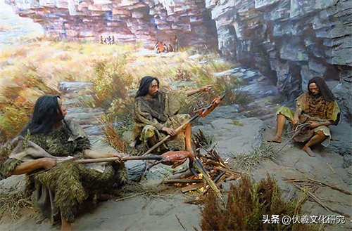 不知过了多少长的时间,人们开始用绳子结网,用网去打猎,还发明了弓箭,这比光用木棒、石器打猎要强得多。不但平地上的走兽,就是天空上的飞鸟,水里的游鱼,都可以射杀、捕捉起来。捕来的鸟兽,多半是活的,一时吃不完,还可以留看、养着,留到下次吃,这样,人们又学会了饲养。这种结网、打猎、养牲口的活,都是人们在劳动中共同积累起来的经验。传说中却说发明这些事的人是“伏羲氏”,或者叫“庖牺氏”(庖牺音páoxī,疱是厨房,牺是牲口的意思)。
