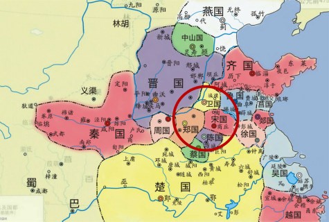 1.郑国姬姓宋氏:郑国是周王室近亲的封国,开国国君是周厉王姬胡的小儿子姬友,周宣王时期公元前806年,周宣王姬静分封同父异母的弟弟姬友到郑地(陕西凤翔县/华县),爵位是伯爵,因此姬友也被称为郑伯友,公元前771年代犬戎之乱中跟周幽王一起被杀,死后谥号郑桓公,郑桓公的儿子郑武公姬掘突护送周平王姬宜臼东迁洛阳有功,东迁之后在周平王的默许下,郑国抢占了东部东虢国和郐国的地盘,定都于郑(今河南新郑)。