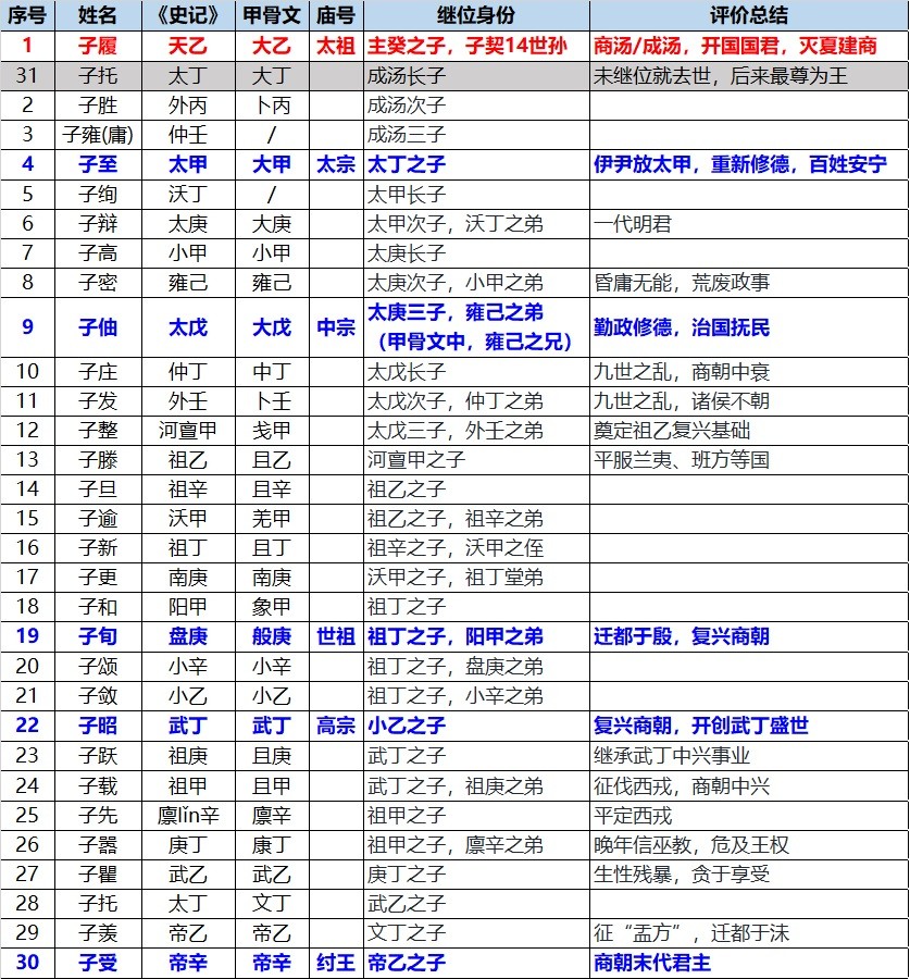 【子契第43世孙,第30任商君子受(纣王),暴虐无道,众叛亲离,商朝灭亡】