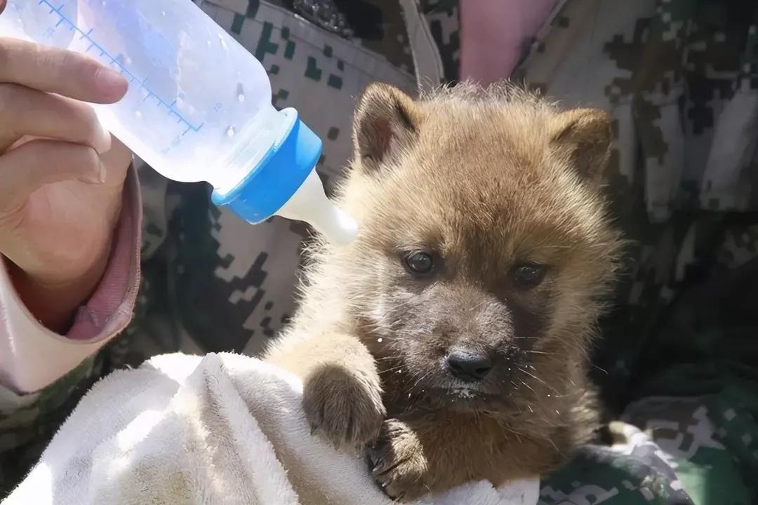 原来,在这6只狼崽被抓回后,由于出生的时间太短,它们还不能自已进食,只能通过人工哺乳才能存活。