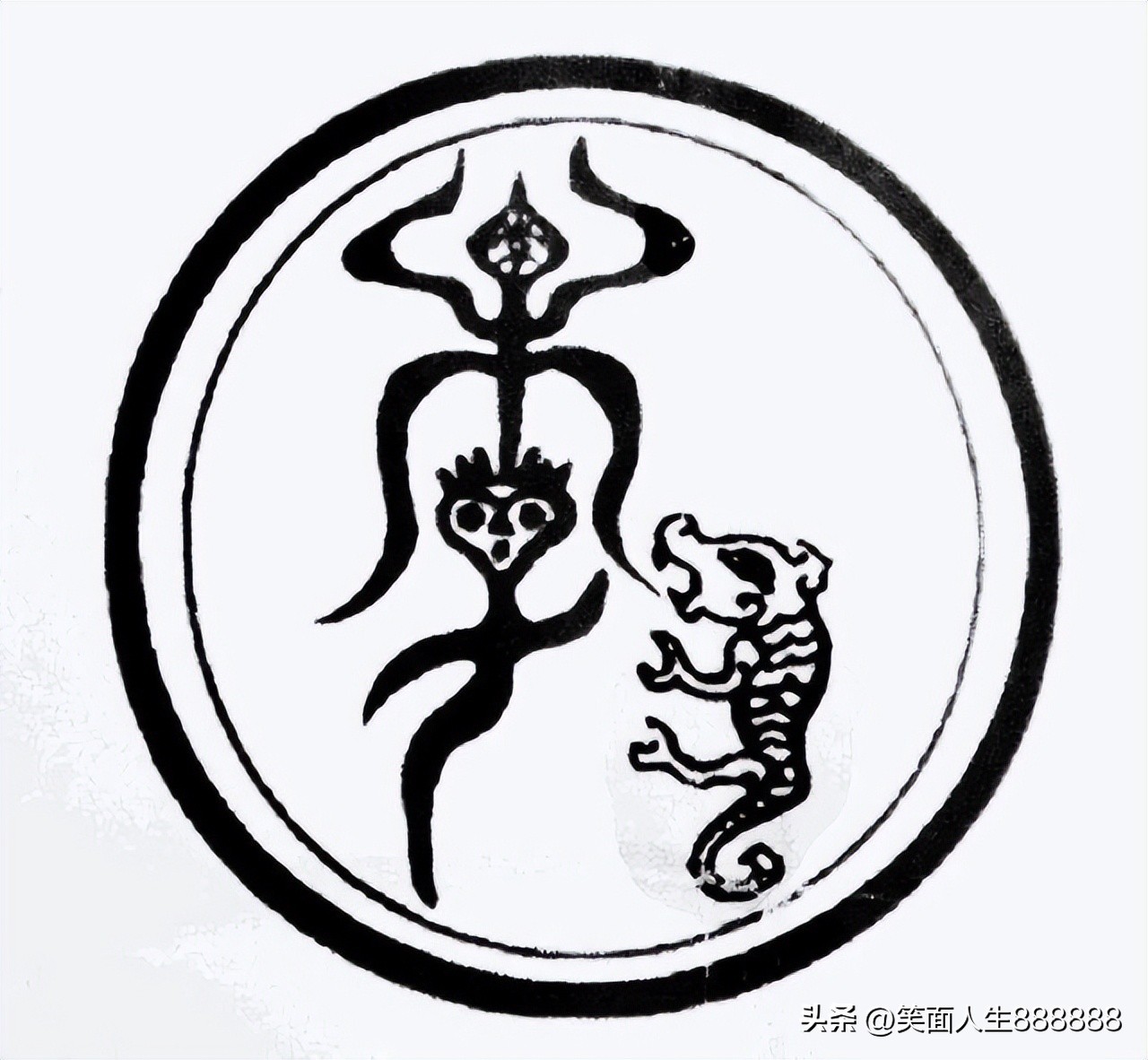 李姓的图腾比较直观,左边是木子李,右边是老虎,其中左边上面的木代表的是李姓始祖皋陶玄鸟族的图腾,下面的子是玄鸟的鸟卵,代表子孙后代。右边虎代表皋陶的祖先少昊,李姓图腾象征白虎少昊的后代。