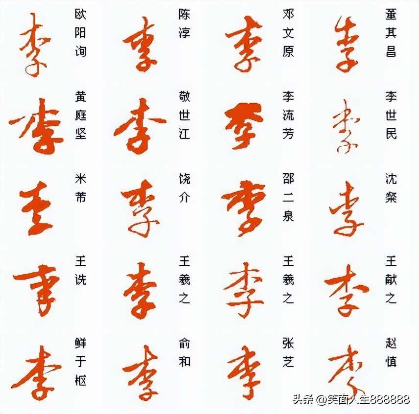 历朝历代名人书法的李字风格: