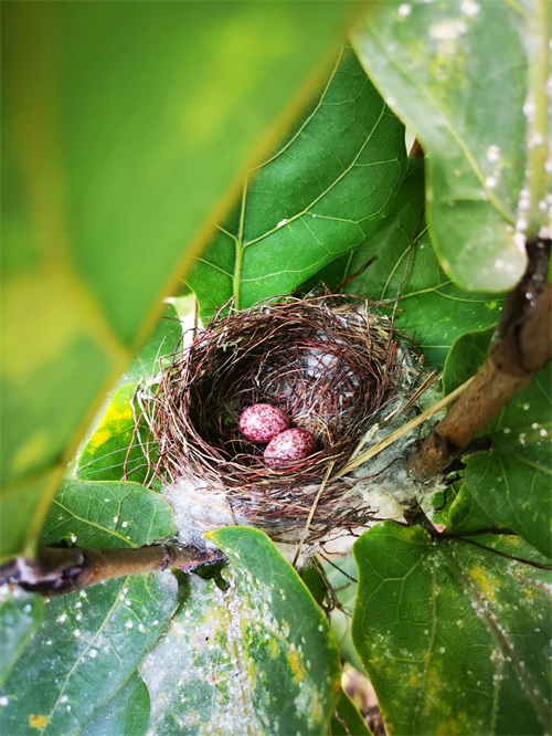 直到某一天我给花浇水时,蓦然发现我的花丛中多了一个鸟窝。。。好惊喜!