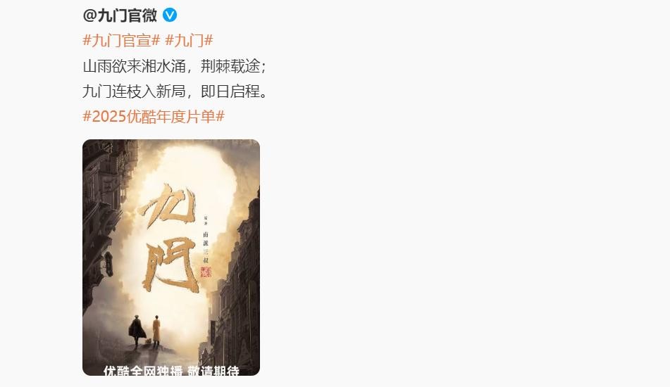 备受关注的《老九门》续作《九门》终于官宣,将于2025年与观众见面。这部由慈文传媒出品的探险题材电视剧,是《盗墓笔记》系列影视作品的又一力作,引发了广大粉丝和剧迷的热烈讨论。
