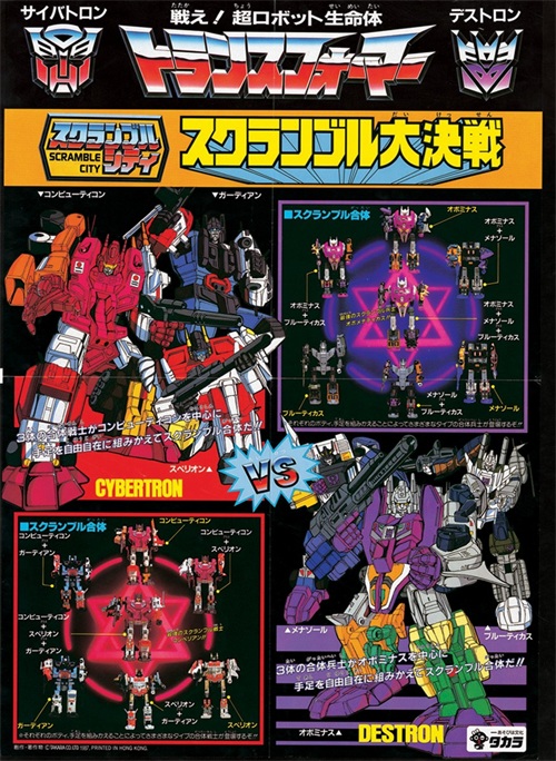 曾几何时,大力神作为战场上唯一的合体金刚呼风唤雨,甚至成为两派竞相争夺的香饽饽。而随着威震天打造出飞虎队,汽车人也有样学样推出了飞行太保,这种可以快速模仿的技术就是著名的交叉合体(合体的四肢成员能任意替换)。自此,合体金刚出现了井喷现象。飞天虎、大无畏、混天豹、守护神……正邪双方的新合体们上演了精彩的对决故事。