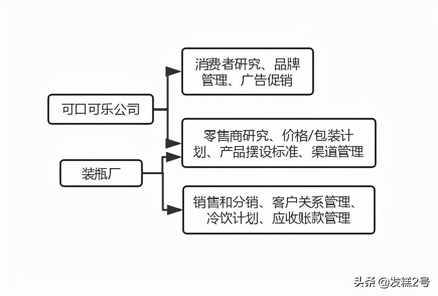 指的是小红只负责制作可乐原浆并配送到各地的加盟商手中,由加盟商自己按配比兑水灌装后进行销售。“分销制度”使小红能够出现在任何消费者需要的地方。