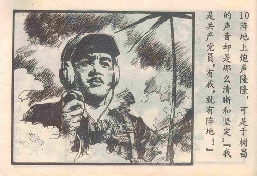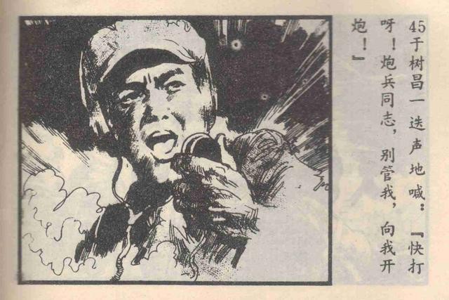 1953年6月29日晚,志愿军23军73师218团通信连步话机员于树昌所在部队为了配合金城主攻方向作战,对无名高地之敌进行反击。在坚守阵地的其他战友全部阵亡后,于树昌调动炮火,打垮了敌人一次又一次的反扑。在敌人包围了他所在地堡,阵地就要失守的危急时刻,于树昌通过步话机发出呼喊:“为了胜利,向我开炮!”随后,他砸碎步话机,拉响最后一颗手榴弹,冲向敌人,牺牲时年仅22岁。