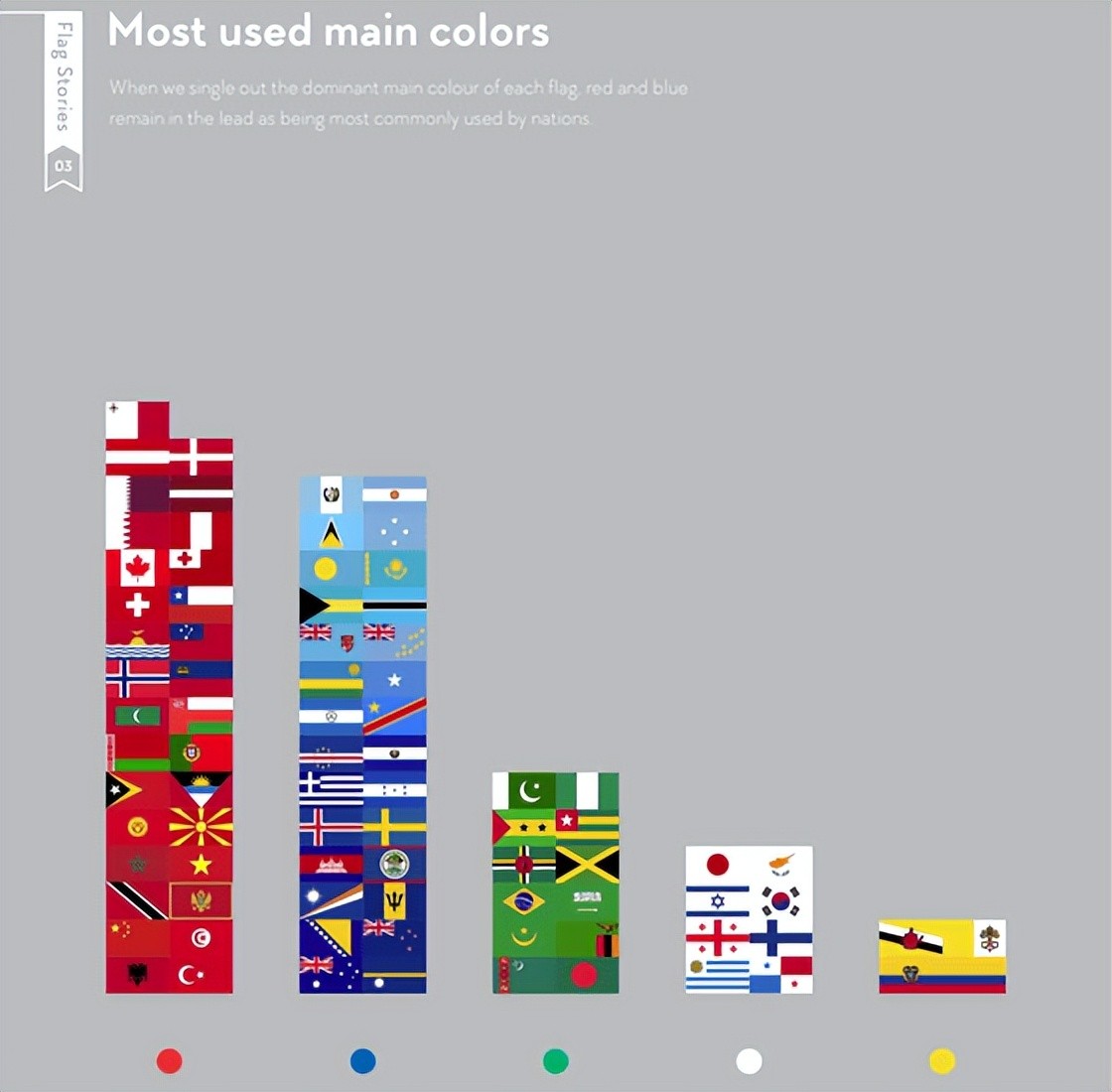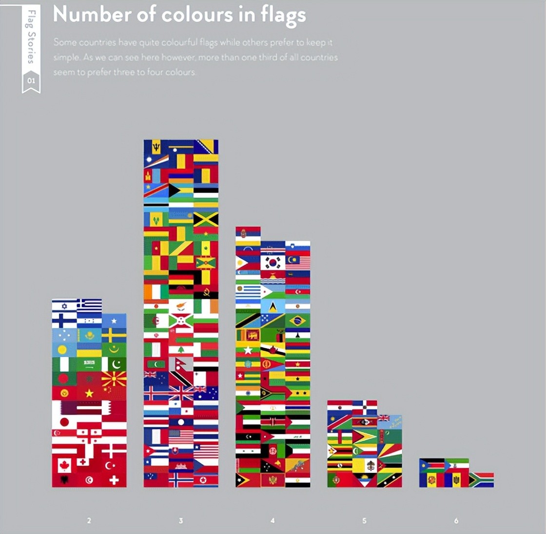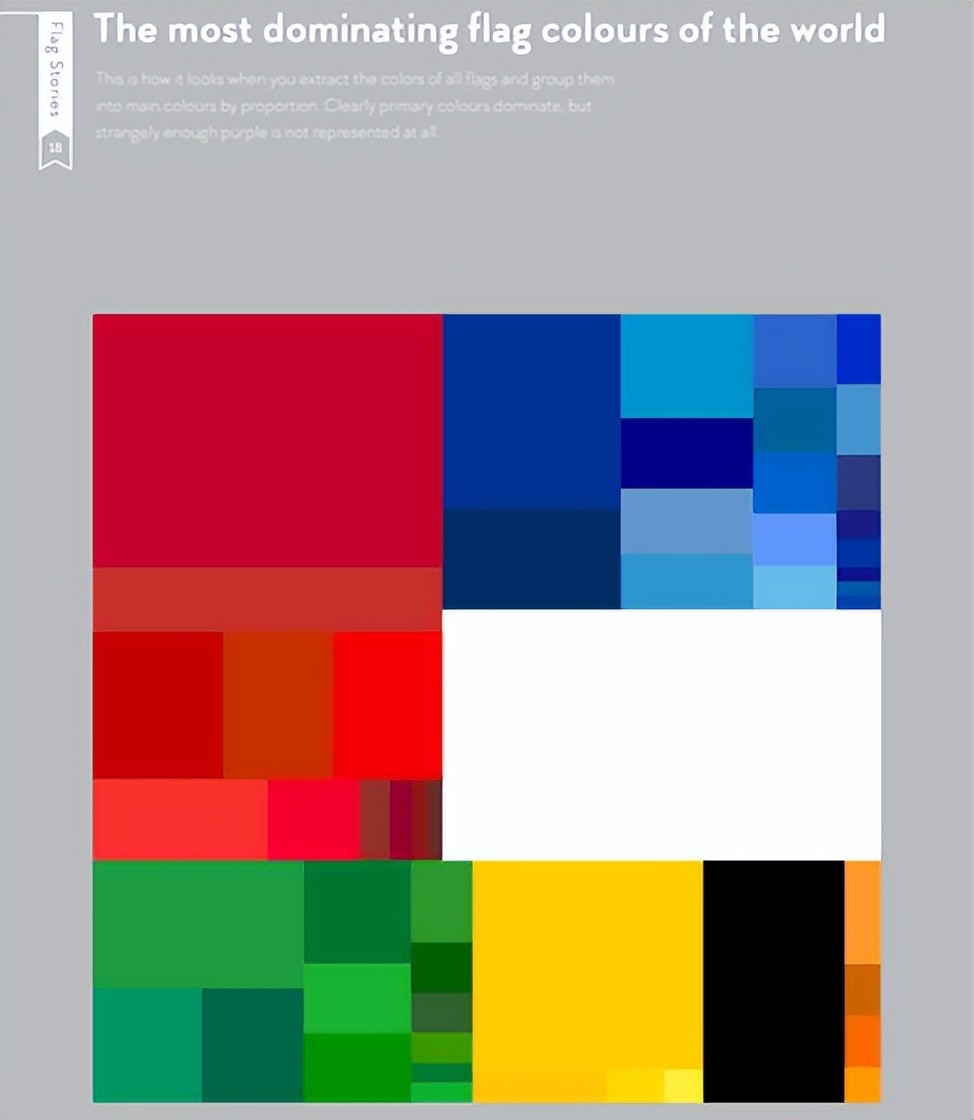 世界上三分之一以上的国旗是三种或四种颜色的简单颜色,但有使用六种以上颜色的彩色旗帜。