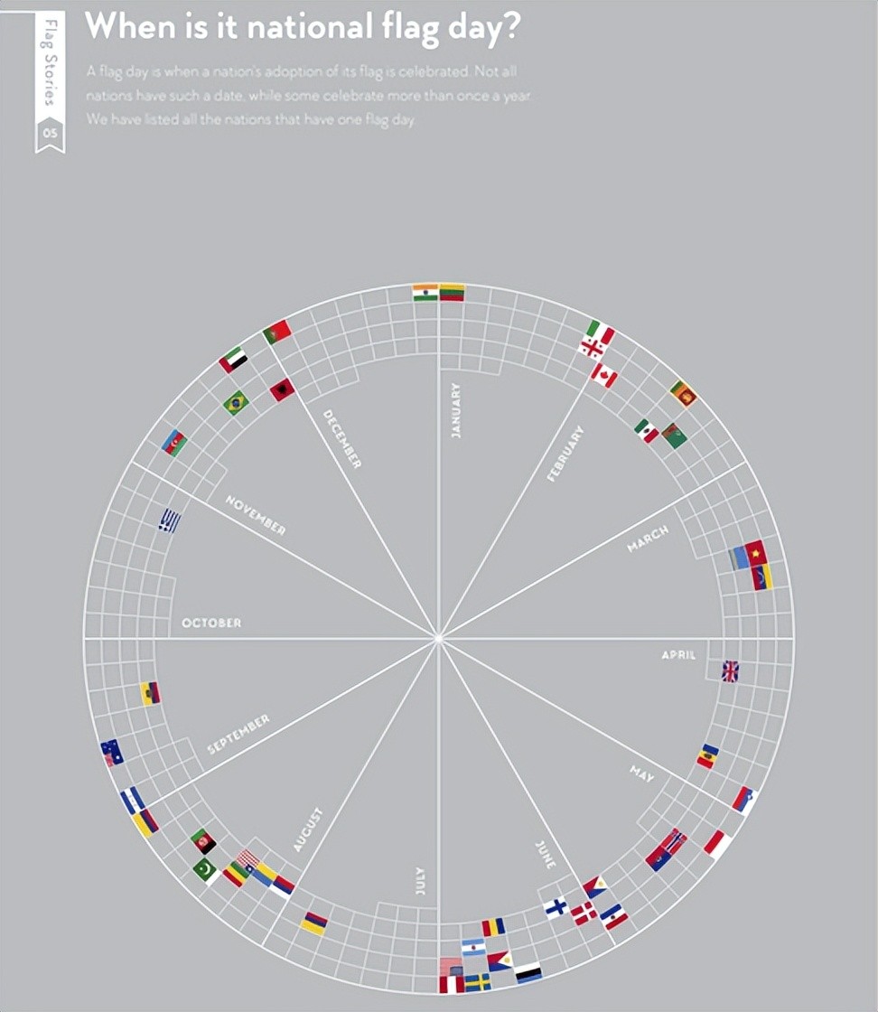 世界上有45个国家的“国旗日”庆祝国旗成立之日,还有其他国家每年庆祝国旗日两次以上。