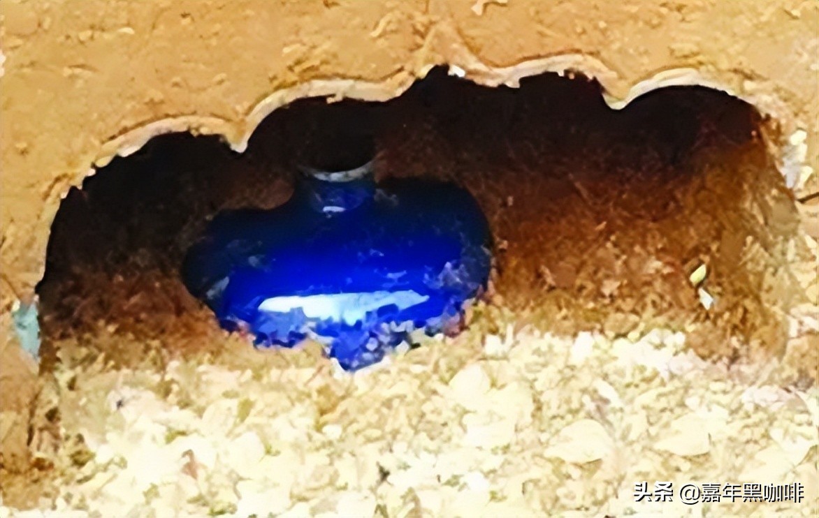 徐达后人的两座墓葬中,类似位置的壁龛中,先后出土了两件非常相似的,宝蓝色梅瓶,貌似孪生兄弟。