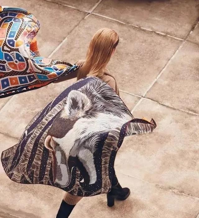 从异域风情的旅行主题到古老的神话故事,每一条丝巾都蕴含着不同的意境、风格和情怀,带领人们通往一个神奇的想象世界。所以把爱马仕的丝巾比喻成会讲故事的人一点也不夸张。