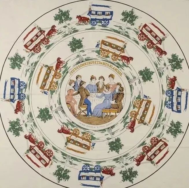 时间要回到1837年,蒂埃利•爱马仕在巴黎创立了品牌爱马仕。100年后的1937年,爱马仕推出了第一款丝巾。设计灵感源自于当时流行的一款古老的棋盘游戏。图案打造的同心圆让内外圈的马车看起来就好像在动一样,完美地诠释了棋盘效果。这款经典的丝巾被命名为“女士与巴士”。