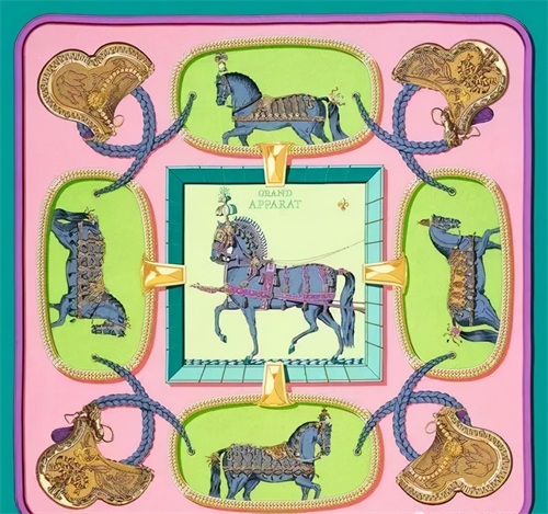 在色彩方面,爱马仕丝巾也是非常考究的,图案繁复华丽,色彩饱和度极高,迄今为止爱马仕已经拥有超过 75000 种不同的图案配色。艺术家们会根据不同的主题制定出最美妙的色彩方案。