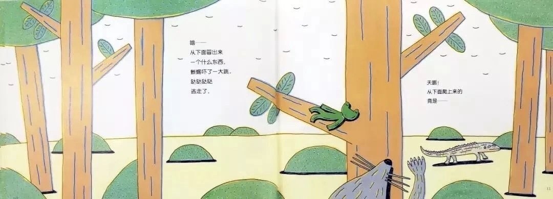 噌——从下面冒出来一个什么东西。蜥蜴吓了一大跳,哒哒哒哒逃走了。天哪!从下面爬上来的竟是——